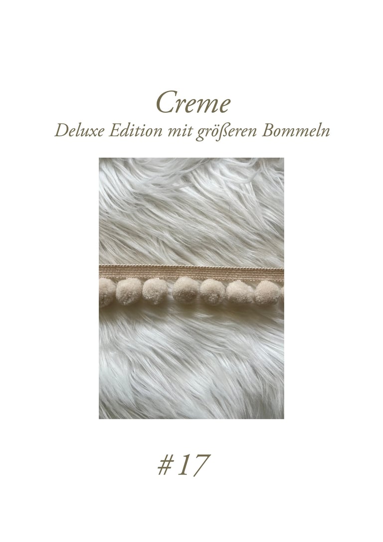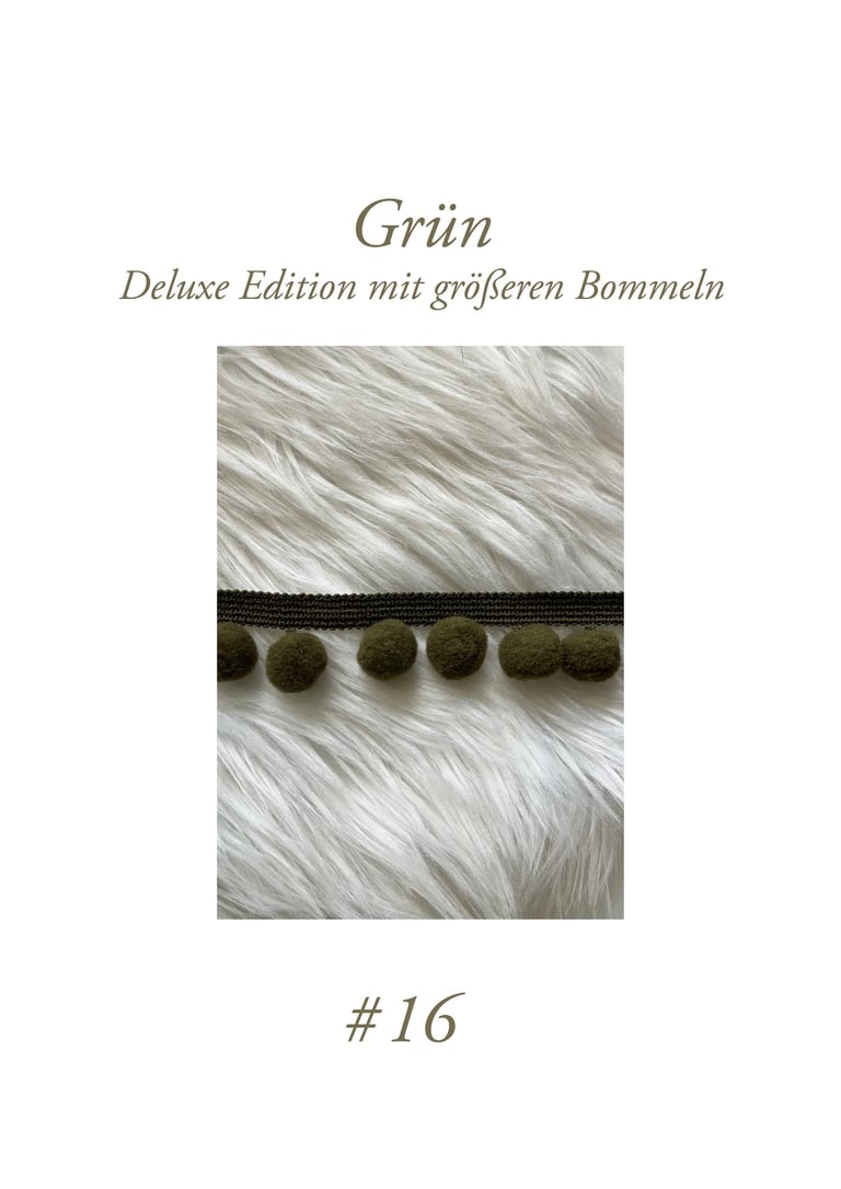 Diese sind ausschließlich für die Anfertigung unserer Mofu Mofu Halstücher wählbar – unsere ganz besonderen Halstücher, welche beidseitig mit den schönen Pompon Borten geschmückt werden.