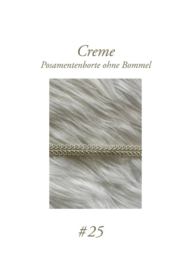 Unsere hochwertigen Borten (inklusive Bommel) bestehen zu 100% aus Polyester. Die cremefarbene Flechtung in der Borte besteht zu 100% aus Baumwolle.